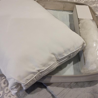 Great quality pillow! I’m a stomach sleeper, and prefer my pillows fairly firm so I appreciate the extra fill that accompanies this pillow. It unzips enough to allow the user to add or remove fill, as desired. I chose the down alternative due to allergies and have no issues sleeping with this pillow! It’s also packaged well, but did ship in an unnecessarily huge box!