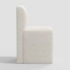 Give a fresh look to your dining area by accenting it with the Cora Dining Chair from Threshold™. This armless dining chair features a simple design with a back for a sophisticated look. Designed with a wooden frame, this dining chair has linen-polyester blend fabric upholstery for comfortable sitting. You can use it in your dining area or any other space as an extra seating option.