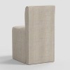 Give a fresh look to your dining area by accenting it with the Cora Dining Chair from Threshold™. This armless dining chair features a simple design with a back for a sophisticated look. Designed with a wooden frame, this dining chair has linen-polyester blend fabric upholstery for comfortable sitting. You can use it in your dining area or any other space as an extra seating option.