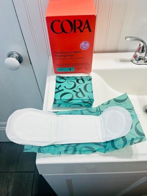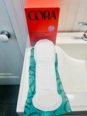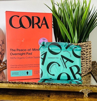 [This review was collected as part of a promotion.] These Cora pads have solved so many of my frustrations with pads. First, the wings are extra long compared to other brands, making it easy to apply these to your panties. The pad sticks nicely without bunching or sliding around like other brands do. Finally, the pad itself feels nice and luxurious on your skin. I took off one star because these pads are labeled overnight, but I seemed to absorb through them quicker than other brands