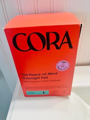 [This review was collected as part of a promotion.] l love this overnight Cora pads very comfortable I cloud ask for more softness pads and is 100% organic cotton super soft and a good quality perfect for those days we need to be comfortable love it