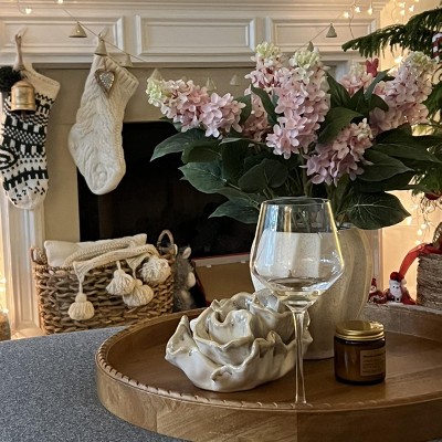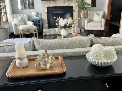 I surprised myself by really liking this item. I saw it online and it looked pretty but I didn’t buy it. Then I saw it in the store and had to have it. The light reflects off the folds so beautifully and it just adds unexpected interest. Love the subtle coastal vibe. It’s sizable and has presence but small enough to be versatile.