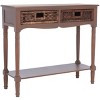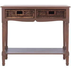 British Colonial styling is updated in the poetic and practical Corbin Console with woven rattan pullout drawers. Sepia Pine finish creates the aura of a vintage find in this gracefully turned piece with lower shelf for display or storage.