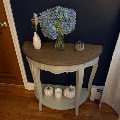 Nice looking table. Seems well made; however, like a couple others have said, it is not off-white or cream, it is gray color. Keeping because I really like it but I'm going to have to do some painting, which is a bit disappointing.
