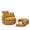 Corduroy Fabric Modern Swivel Chair with Storage Ottoman, Backrest Pillow and High-Density Foam Cushions