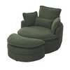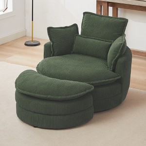 Corduroy Fabric Modern Swivel Chair with Storage Ottoman, Backrest Pillow and High-Density Foam Cushions