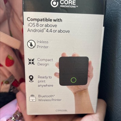 Introducing the Core Innovations Wireless Portable Thermal Printer, the perfect inkless printer for on-the-go! With one-click printing, you can print photos, designs, labels, receipts, banners, and more - instantly and easily! This sleek, lightweight pocket-sized printer is designed to go anywhere you do. Our portable thermal printer connects to your iOS & Android devices via Bluetooth with ease. Its monochrome thermal printing technology ensures high-quality, smudge-free prints without messy ink or toner. The long-lasting rechargeable battery keeps you printing continuously for up to 2 hours. Our user-friendly app – available on the App Store and Google Play – gives you customizable print options, templates, filter effects, border options, stickers and a variety of print sizes. With easy-to-use directions and outstanding portability, the Core Innovations Wireless Portable Thermal Printer is your go-to printing resource for home, work or school. Create, print, and share effortlessly and quickly wherever you roam!