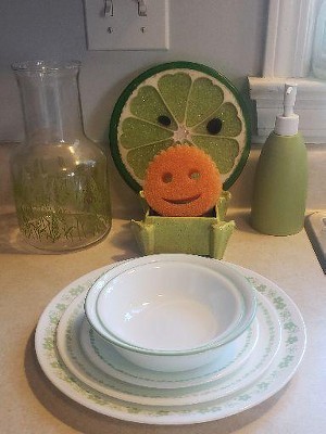 I love that Corelle remade the classic Spring Blossom AKA "Crazy Daisy" pattern with a bit of an updated look. I love Corelle and collect vintage kitchenware such as Pyrex and have been wanting a new set for everyday use to match my decor, but couldn't commit to buying a vintage pattern due to the colors not being quite right and also lead concerns (since we would be using ours, not just for display). The original color was avacado, but the new color is more of a chartreuse, which fits right in with my bright kitchen color scheme. My only complaints about the set is the bowls are smaller than expected (I was replacing a set purchased new 6 years ago that had bigger bowls) and lunch/salad plates are not included in this set. I was able to find another big box store that sells the plates individually, so I was able to complete the set. They sell them directly from Corelle, too, but it is quite a bit more expensive. This set is still a great deal for the price and includes more than other sets sold by competitors. I really hope they make more coordinating items such as the Pyrex storage containers! I would totally buy them if they did.