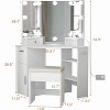 Corner Vanity Makeup Desk with Vanity Mirror, Built-in Lights, 2 Drawers, Power Outlet, Makeup Desk for Bedroom, White