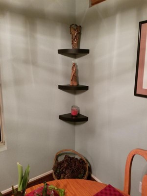 InPlace 11.8" Floating Corner Shelf Wall Mounted Espresso - Modern Decor, Wood Composite, Includes Mounting Hardware