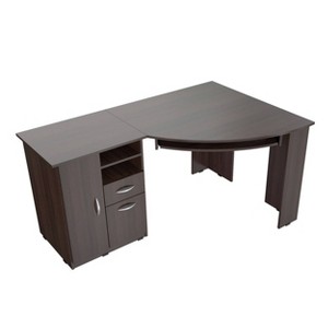 Corner Work Center Espresso - Inval: L-Shaped, Enclosed Cabinet, Open Shelf, CPU Storage