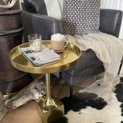 Corvus Round Side Table - FOX5519A - Antique Brass - Safavieh Couture