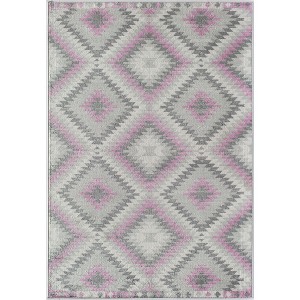 • Bubblegum pink lends a youthful accent to this bold rug