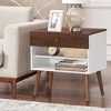 Costway 2PCS Nightstand End Side Table Drawer Storage Shelf Mid-Century Rubber Wood Leg
