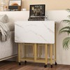 Costway 3 PCS Rolling Dining Table Set Extendable Kitchen Table 2 Stools with Wine Rack White