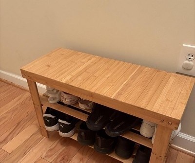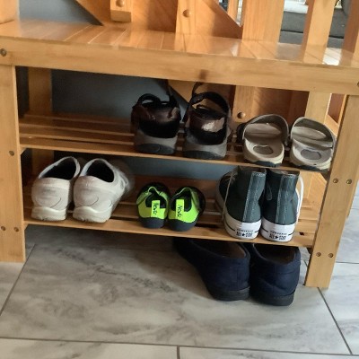 Costway 3 Tier Bamboo Shoe Rack Bench Storage Shelf Organizer Entryway Home Furni