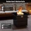 - Well Selected Materials: The fire pit table boasts a black tempered glass top that is heat resistant and easy to maintain. Paired with elegant PE wicker which is sunproof and anti-fading, and a reinforced metal frame, the fire pit table promises durability and style.