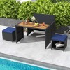 Costway 4 PCS Outdoor Dining Set, Rattan Loveseat Chair & 2 Ottomans Blue