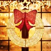 Featuring 200 energy-efficient LED lights, this stunning wreath decoration will illuminate your space with an inviting glow throughout the holiday season. The lighted wreath includes a red bow, bringing holiday cheer both indoors and outdoors. Crafted from weatherproof materials and supported by a sturdy metal frame, the pre-lit Christmas wreath is designed to stand the test of time. You can easily display this versatile wreath on walls, doors, or windows with 2 equipped hanging hooks. Additionally, the simple installation process ensures that you can enjoy the beauty of your Christmas decoration with ease.