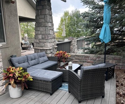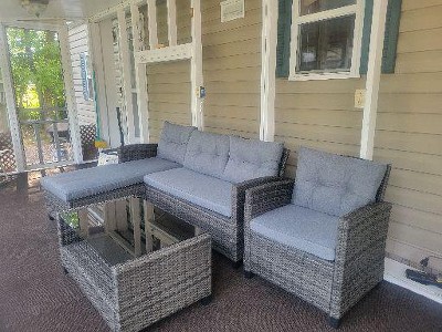 This patio furniture set impresses with its stylish design, comfort, and durability, making it a great addition to any outdoor space. Guests appreciate the plush cushions and sturdy frame, which provide a luxurious seating experience. While assembly can be challenging, the overall value and aesthetic appeal have exceeded expectations, making it a recommended choice for those seeking an affordable yet elegant outdoor seating option.