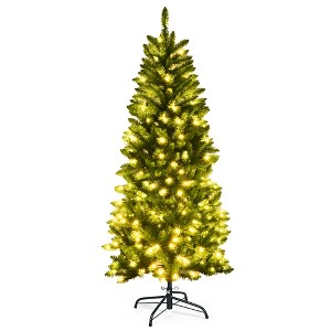 Costway 5/6/7 Ft Pre-lit Artificial Pencil Christmas Tree Hinged Fir PVC Tree with 150/250/350 LED Lights - 1 of 4