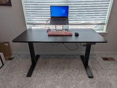 Great desk no noise on the motor. Digital screen for buttons. Very sturdy! Heavy and worth the price.
