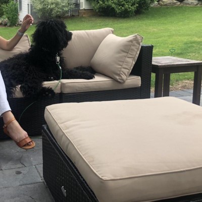 - Easy to Assemble & Dimensions: Coming with all the necessary parts and hardware, it is simple to assemble the rattan sofa set. Corner sofa size: 29.5'' (L) x 29.5''(W) x 25''(H), armless sofa size: 29.5'' (L) x 25.5''(W) x 25''(H), large ottoman size: 29.5'' (L) x 29.5''(W) x 12.5''(H), small ottoman size: 25.5'' (L) x 25.5''(W) x 12.5''(H).