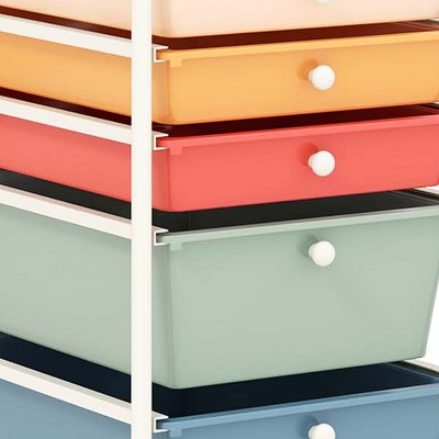 PROS: Perfect to hold all my 6 year old\'s crafting supplies! She loves the rainbow colored drawers and that it is on wheels... Easy to ass CONS: I wish it was the same height as the cart with the smaller drawers.