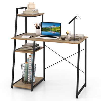Costway Computer Desk with Shelves Study Writing Desk Workstation with Bookshelf Natural\Brown