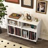 - Ample Storage & Display Space: This turntable stand offers 2 open shelves and 4 compartments for storing vinyl records, books, decorations and other audio equipment. The wide tabletop enlarges display space for turntables and stereo speakers.