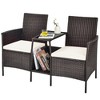 Costway Patio Rattan Wicker Conversation Set Sofa Cushioned Loveseat Glass Table