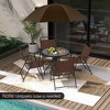 Costway Patiojoy 6 PCS Patio Dining Set Folding Chairs Glass Table Tilt Umbrella Garden Brown