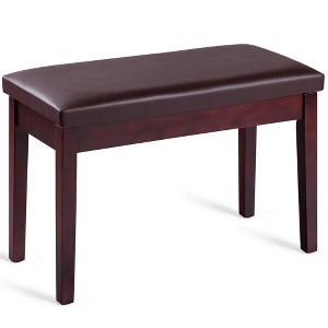 Costway PU Leather Piano Bench Padded Double Duet Keyboard Seat Storage Brown