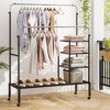 - User-oriented Details: With 4 smooth wheels, this heavy-duty clothes rack can allow for effortless movement. 2 of the wheels feature a lockable design for added safety. Furthermore, both of the hanging bars have anti-falling devices to prevent hangers from falling off.