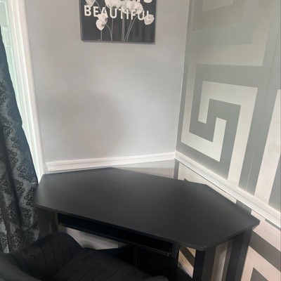 Perfect fit for my corner small space. Easy and quick to put together. It would be better if the desk had a piece that went closer to the wall. it’s easy for stuff to fall behind.