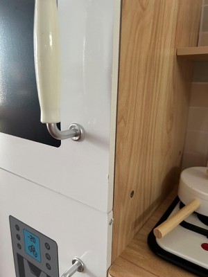 I really love the kitchen and so does my toddler. I am disappointed because two of the doors have scratches and the oven door doesn't seem to go on properly. I have taken it apart several times, reread the instructions but the door is not flushed and doesn't close like the others. We already put it together so returning it would be a hassle so will be keeping it.