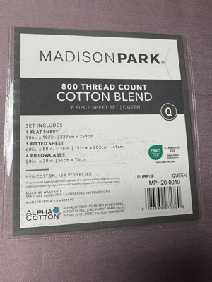 [This review was collected as part of a promotion.] This sheet set is made with a fabric of 800 count cotton blend . So it feels luxurious and silky, the color is a beautiful muted purple shade that complements my decor. Unfortunately we actively avoid synthetic and missed the fabric content. I however tested them and they feel silky, fit true to size even with a topper. The care will be super easy and durable. The quality is well made we just prefer a different fabric.