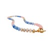 This necklace features 8mm rondelle beads of blue, white, and pink quartz, offering soft, grounding energy in a bold, confident silhouette. The gentle gradient of color feels like sunrise over still watercalming, fresh, and full of possibility.Finished with a waterproof, tarnish-resistant gold-plated stainless steel toggle clasp, this necklace blends classic structure with modern charm. Part of our Bold Stone Collection, its a standout piece designed to reflect the strength, beauty, and resilience found in natureand in you.