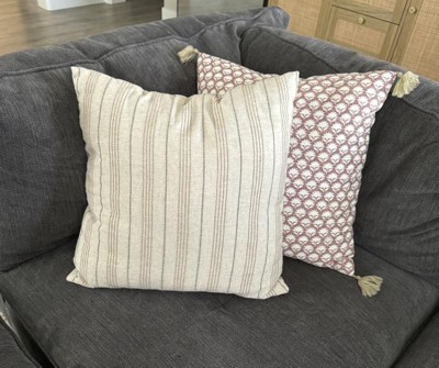 Add timeless, casual elegance to your living room or sitting space with this Cotton Flax-Woven Striped Square Throw Pillow from Threshold™. This double-sided throw pillow is decorated with woven stripes on a solid background to complement farmhouse, cottage or coastal aesthetics. Featuring a cotton-linen shell with soft polyester filling, the square throw pillow is sure to add the right amount of comfort and style to your sofa, chair or bench.
