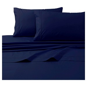 Cotton Percale Solid Sheet Set (Full) Midnight Blue 300 Thread Count - Tribeca Living: Includes Deep Pocket Fitted Sheet, 100% Cotton