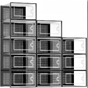 Coucheta 12-Pack Large Foldable Plastic Shoe Boxes, Front-Opening, Black
