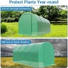 - Thick & Tear-Resistant PE Cover with UV Protection:Shield your plants with a premium 140 g/m簡 polyethylene cover that offers superior UV resistance, 100% waterproofing, and effective heat retention. Double-stitched seams and reinforced edges around windows prevent tearing and extend the cover's life. The extended ground skirt can be buried or weighted down to enhance insulation, improve humidity control, and maintain a stable growing temperature.