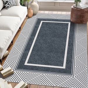 This rug feels like a polished yet cozy addition to any room—its sleek bordered design fits right in, whether your decor is modern or traditional, tying the space together with subtle elegance. It’s thin enough to slide under sofas or dining tables without bunching, perfect for high-traffic spots like hallways where bulk would be a hassle.Cleaning is a breeze: vacuum up crumbs in minutes, or toss it in the wash with cold water when it needs a refresh—no fading, no losing its shape. The non-slip backing keeps it steady, even when kids run through or pets play, so you don’t worry about slips. It’s the kind of rug that works hard for your home—easy to care for, safe, and always looking put-together, making everyday spaces feel a little more special.