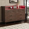 Product Name: Coucheta 8-Drawer Dresser with Charging Station and LED Lights,Wide Bedroom Dresser with 3 Outlets & 2 USB Ports & Gold Handles,for Living Room,Brown