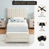 - Upholstered Twin Bed: Elevate your bedroom with this modern kids bed frame, featuring a plush fabric headboard. The soft, textured upholstery not only adds a pop of color and style but provides a comfortable spot to relax, read, or watch TV