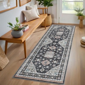 Coucheta boho Vintage Rug - Washable, Non-Slip Low-Pile Floral Accent Carpet for Home & Office