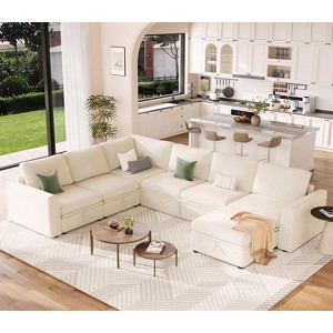 - 【Modular & Reconfigurable Design】Includes a loveseat, single seat, corner seat, ottoman, and armrests that you can arrange in various U-shaped or linear layouts to fit your room and needs.
