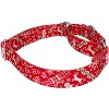 Is your escape artist slipping out of their collar? Martingale collars are designed to prevent your pup from pulling out of their collar by tightening around your dog’s neck whenever they try to remove their heads. Once your dog quits pulling, the collar relaxes again. Perfect for training, the twin-loop design gives you control over your stroll. The martingale collar is often referred to as a humane choke collar because it naturally limits how much it tightens, ensuring your dog's safety. A no-slip, adjustable, limited choke collar is an excellent solution for sighthounds who slip out of their collars. Celebrate the holiday season with this festive collection of martingale dog collars. Printed using state-of-the-art colorfast inks, our collars will not run or bleed. Crafted from industry-leading hardware and webbing, Country Brook Petz’ Christmas Collection of Martingale Dog Collars stand up under tough conditions, all while keeping your furry friend looking fab. By adjusting the metal slide, you give slack to the loop. Slip it over your dog's neck and decrease size until you can comfortably slip only two fingers under the collar. The unique limited closure prevents the choke from becoming too tight. We at Country Brook Petz pride ourselves on only using the best hardware, and you can rest assured that these collars will withstand whatever your pup gets into. Our collars have wide-mouthed heavy-duty triglides for easy adjustment and heavy-welded D-rings for strength. Country Brook Design cannot be held responsible for misuse of this product. It is the responsibility of the purchaser to determine the suitability of the product for their use.