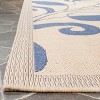 Crafted with the latest power loomed technology, this rug is composed of a durable blend of 88% polypropylene and 12% polyester, ensuring easy maintenance and adaptability to various settings. The enchanting blue patterns woven against the natural backdrop provide a serene yet compelling aesthetic that can enhance any corridor, patio, or living area.