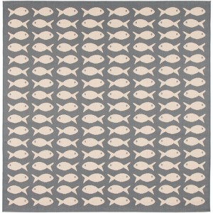 Bring a touch of coastal charm to your home decor with this exquisite 6' 7" X 6' 7" Square area rug. Expertly crafted in Turkey, this rug is a testament to quality and design, featuring a playful pattern of grey and beige fish that adds a whiff of oceanic inspiration to any indoor or outdoor setting.